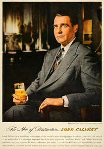 This is an original 1947 color print ad for Lord Calvert alcohol from the Calvert Distillers Corporation of New York City. The ad features an image of the actor, Mr. Ralph Bellamy.