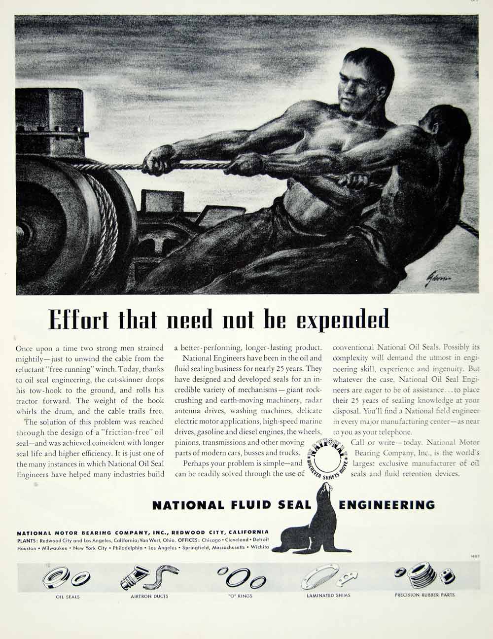 This is an original 1947 black and white print ad for the National Fluid Seal Engineering Company from Redwood City in California.