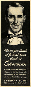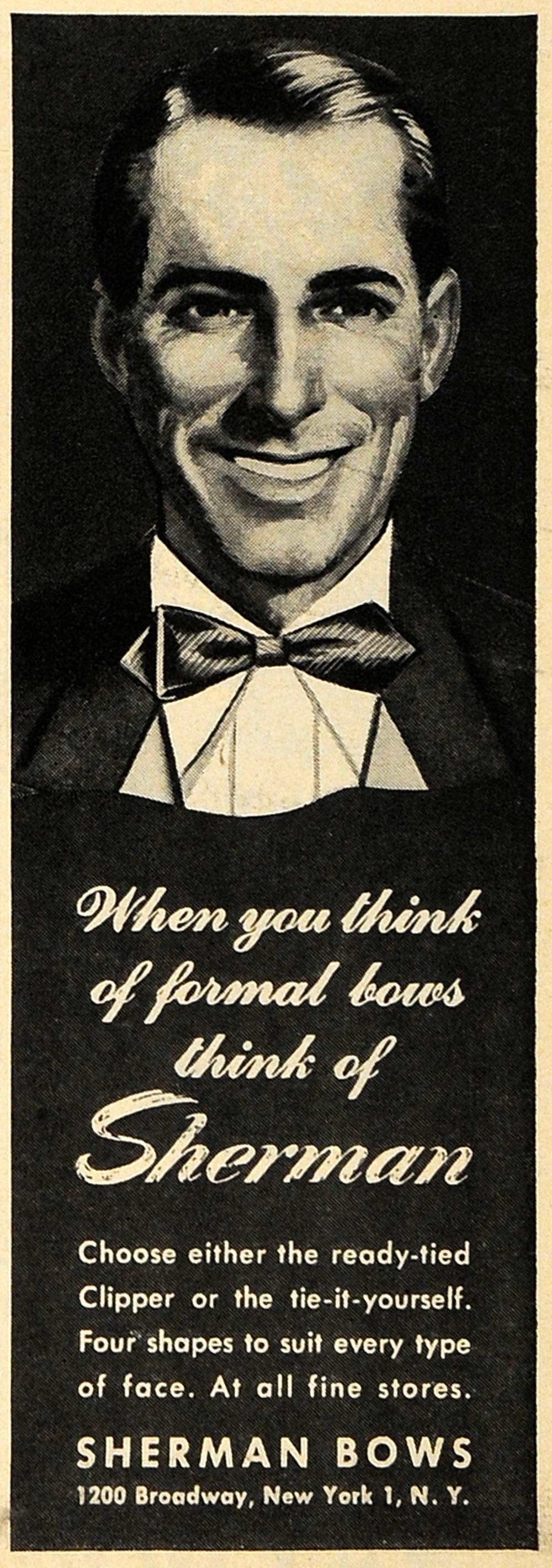 This is a small original 1947 black and white print ad for the Sherman Boys, 1200 Broadway, New York.