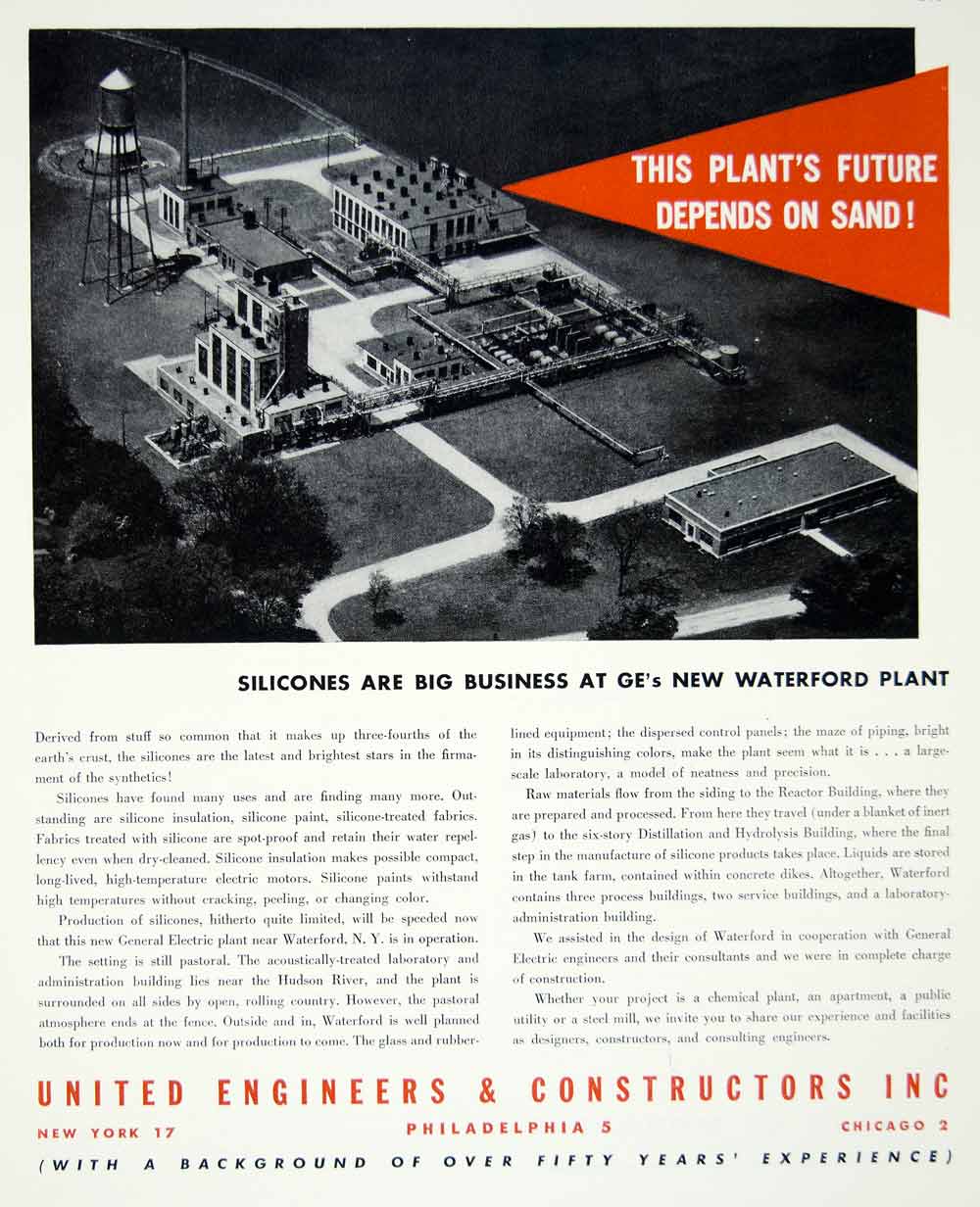 This is an original 1947 two-color print ad for the United Engineers & Constructors Inc.