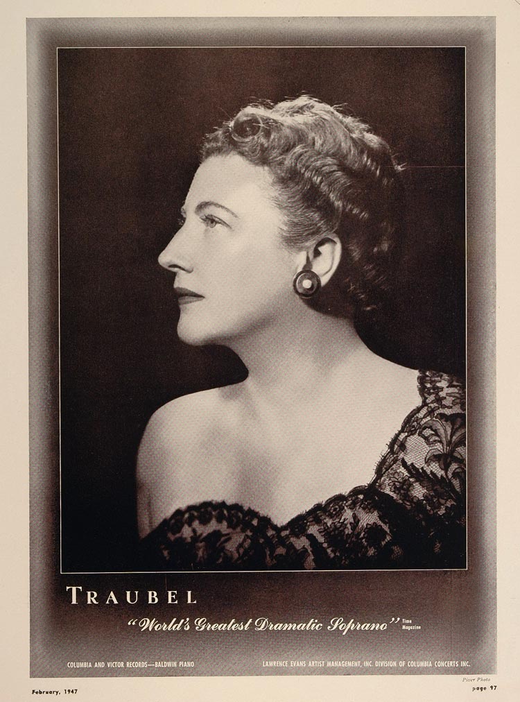Original black and white 1947 booking ad for Helen Traubel (1899-1972), the "world's greatest dramatic soprano." Management: Lawrence Evans Artist Management, Inc.