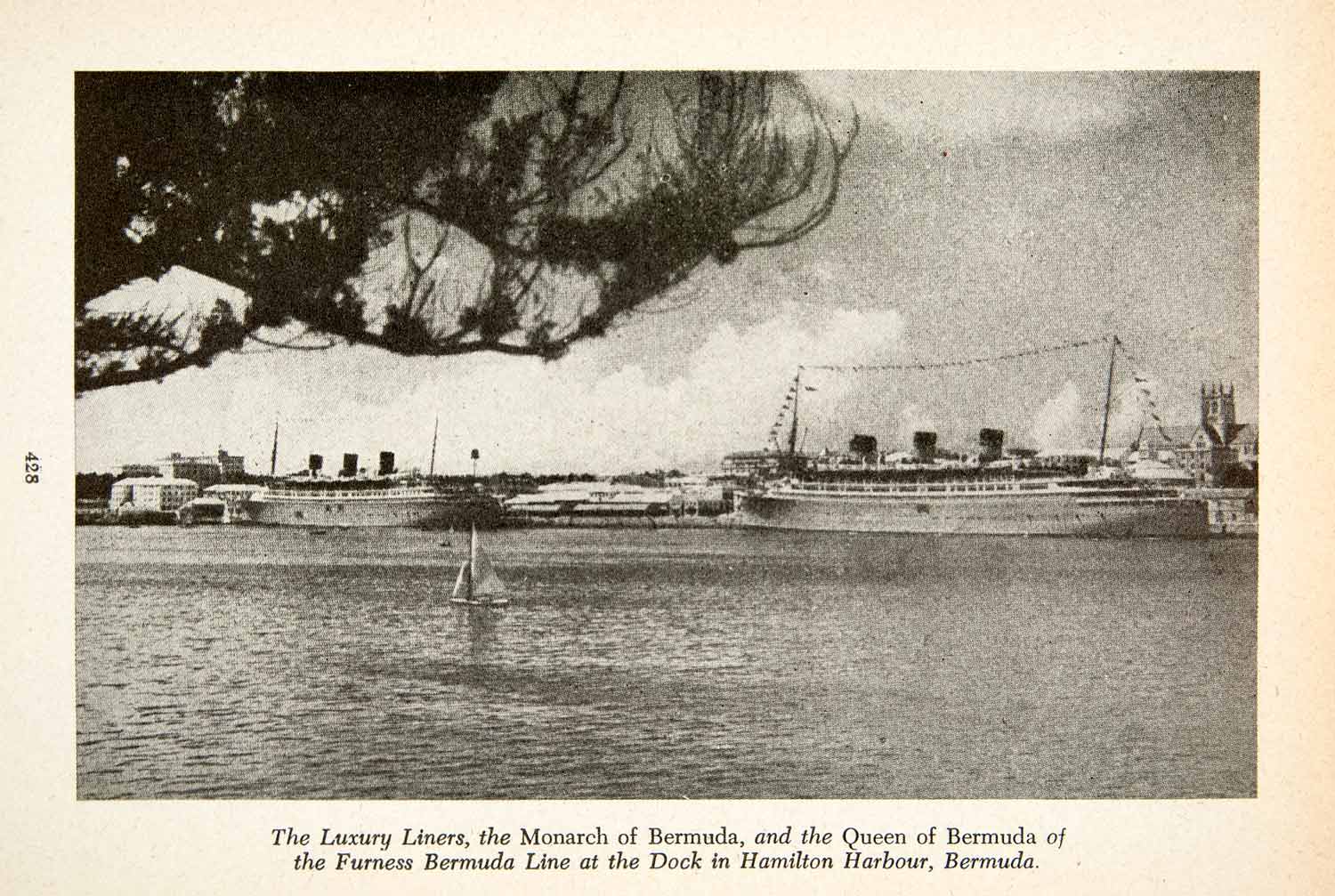 Queen of Bermuda of the Furness Bermuda Line at the Hamilton Harbour dock in Bermuda.