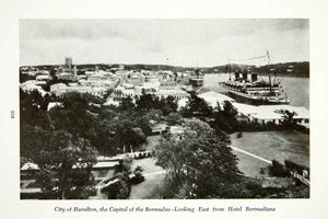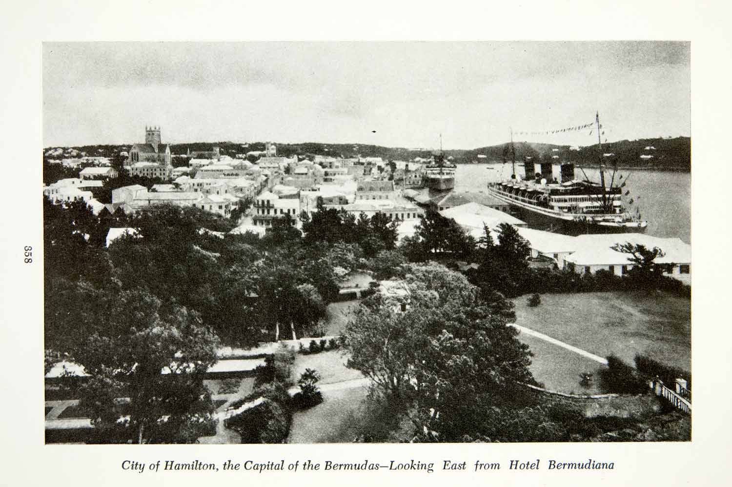 This is an original 1947 black and white halftone print of the city of Hamilton in Bermuda, as viewed from the Hotel Bermudiana.