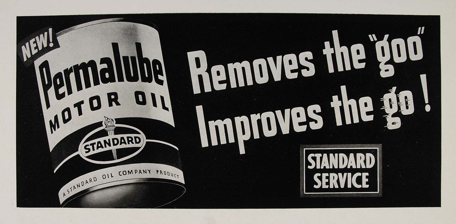 This is an original 1947 halftone print of an advertising poster for Permalube Motor Oil from the Standard Oil Company--Indiana. Artist: Potter-Zielgler. Agency: McCann-Erickson.