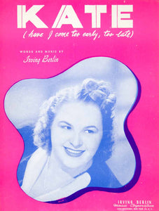 1947 Sheet Music Kate Have I Come Too Early Too Late Smith Irving Berlin ZSM1
