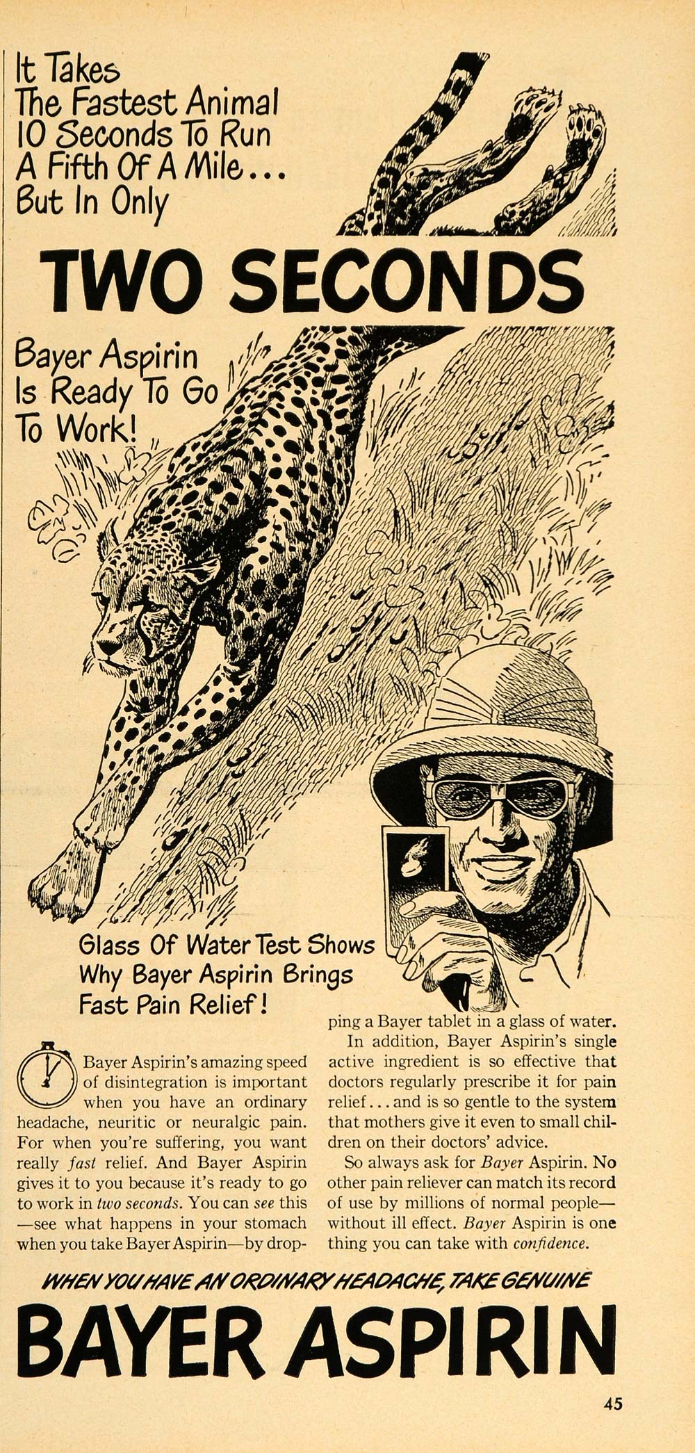 This is an original 1948 black and white print ad for Bayer Aspirin Company.