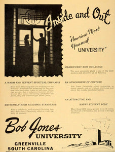 This is an original 1948 black and white print ad for the Bob Jones University located in Greenville, South Carolina which is considered to be "America's Most Unusual University".