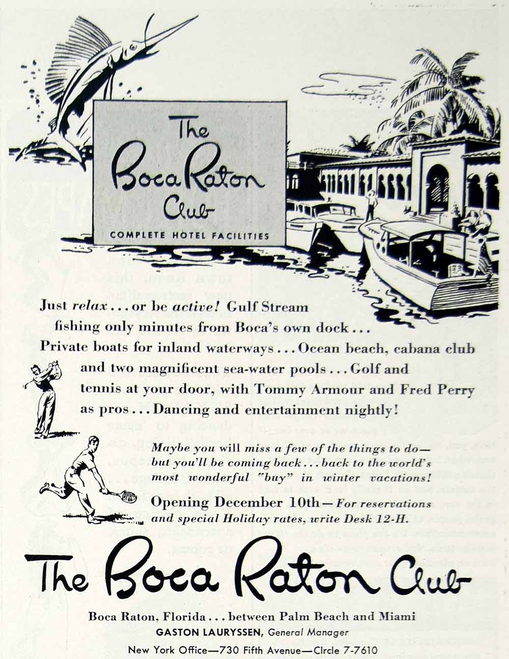 This is an original 1948 black and white print ad for the Boca Raton Club in Florida.