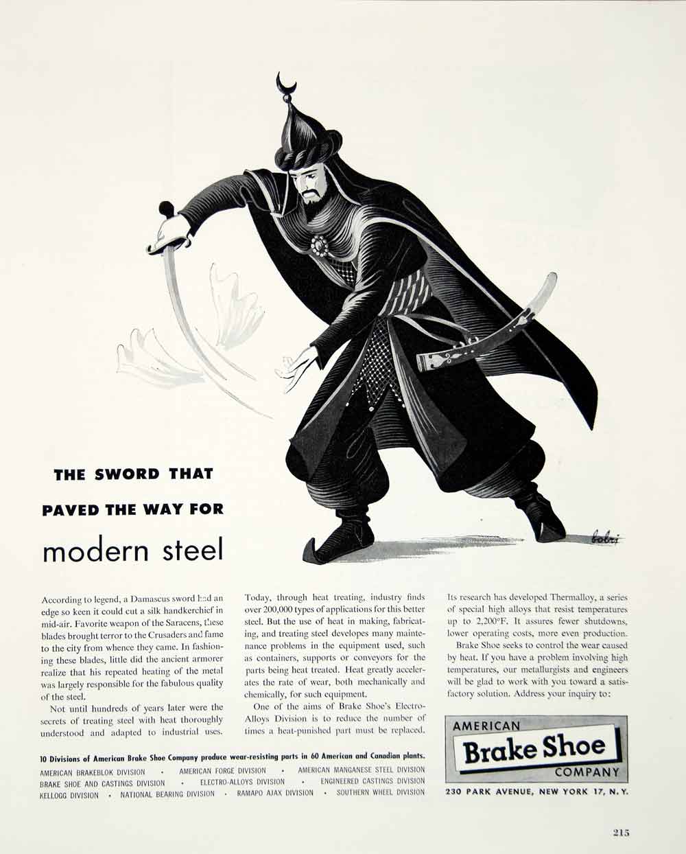 This is an original 1948 black and white print ad for the American Brake Shoe Company.