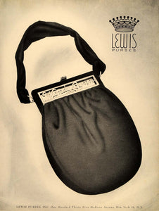 This is an original 1948 black and white print ad for Lewis Purses, Inc., 135 Madison Avenue, NYC.