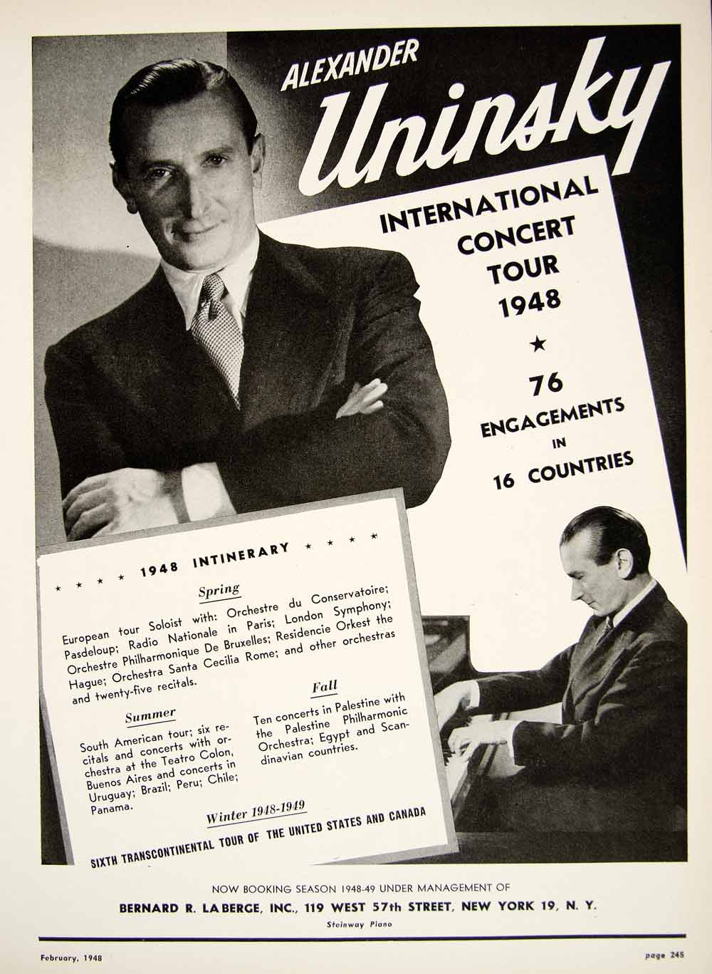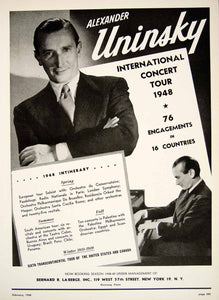 This is an original 1948 black and white booking ad for pianist, Alexander Uninsky (1910-1972). Management: Bernard R. La Berge, Inc.