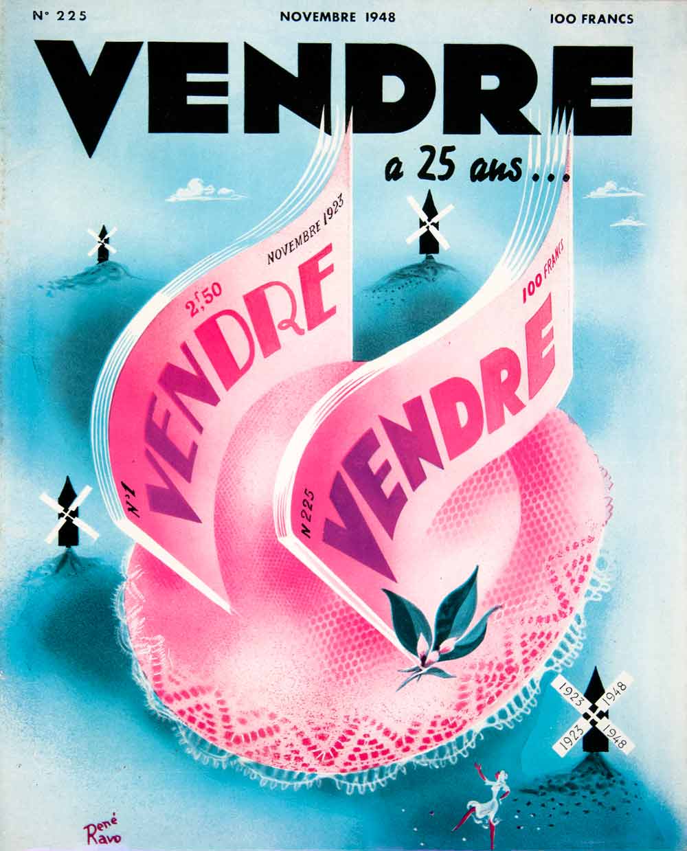 This is an original 1948 color lithograph cover for the November issue of Vendre, a French publication.
