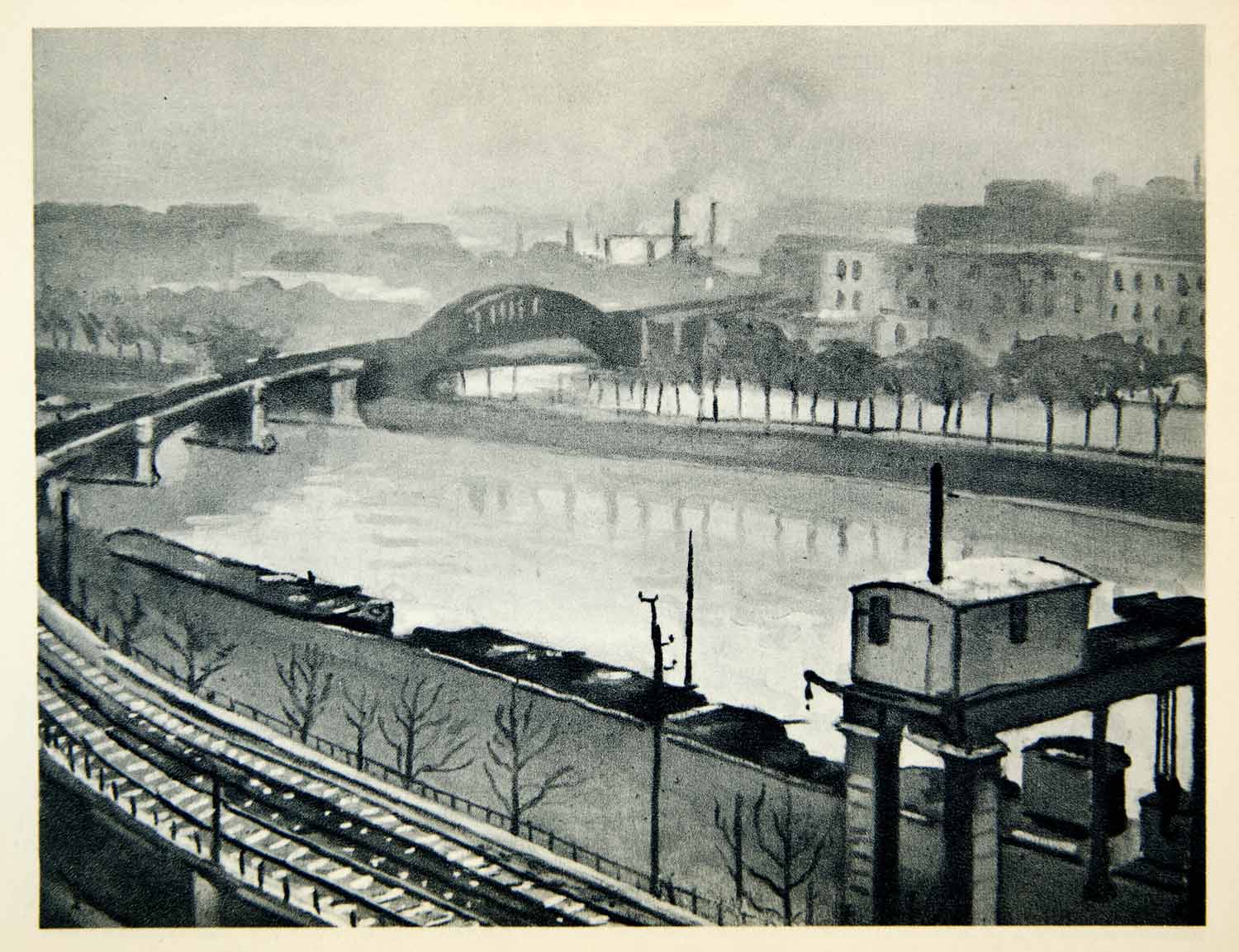 1948 Photogravure Albert Marquet Art La Seine Grenelle River Railroad Train XAX5