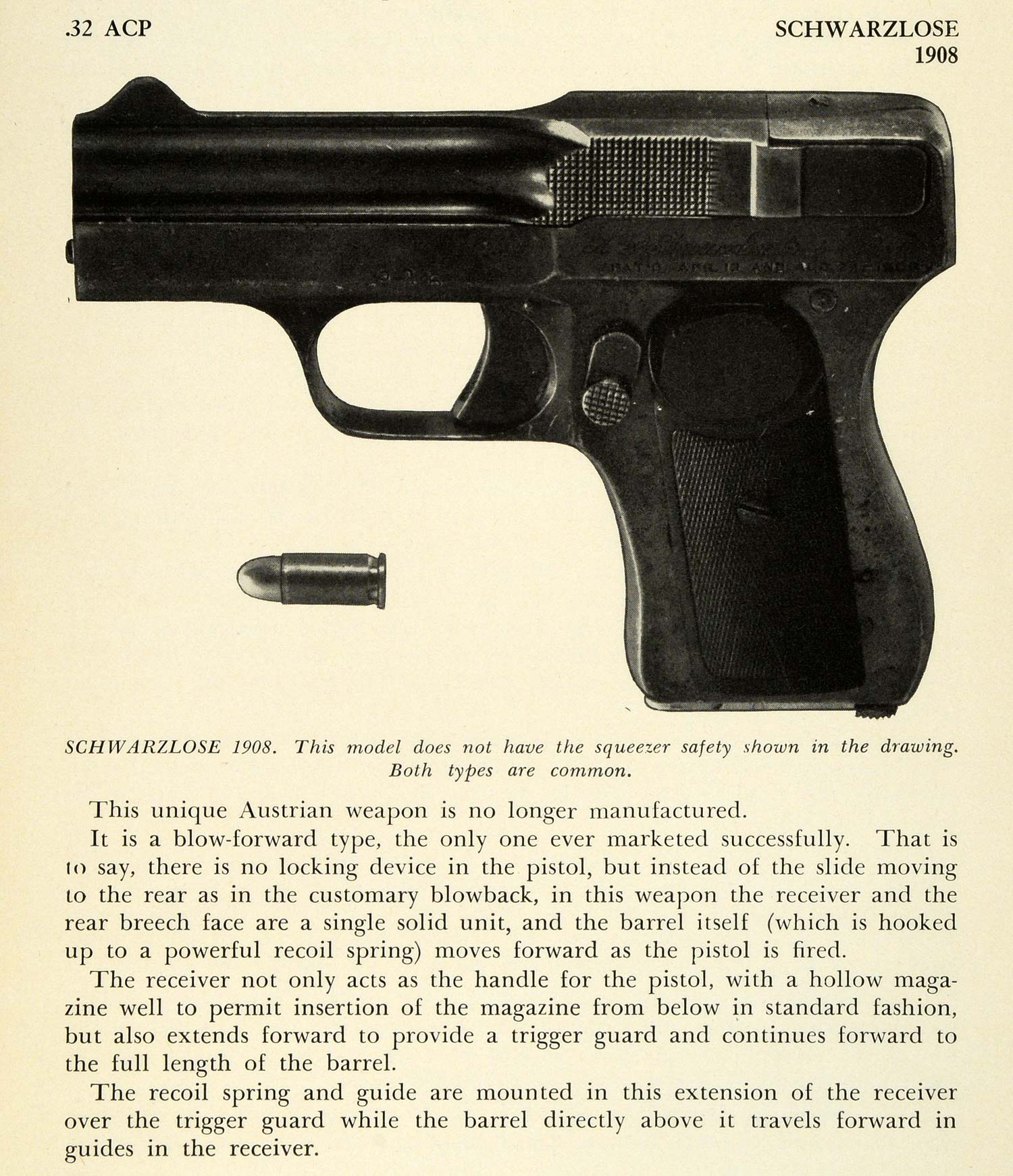 1948 Print 1908 .32 ACP Schwarzlose Pistol Austrian Weapon Handgun Firearms PR3