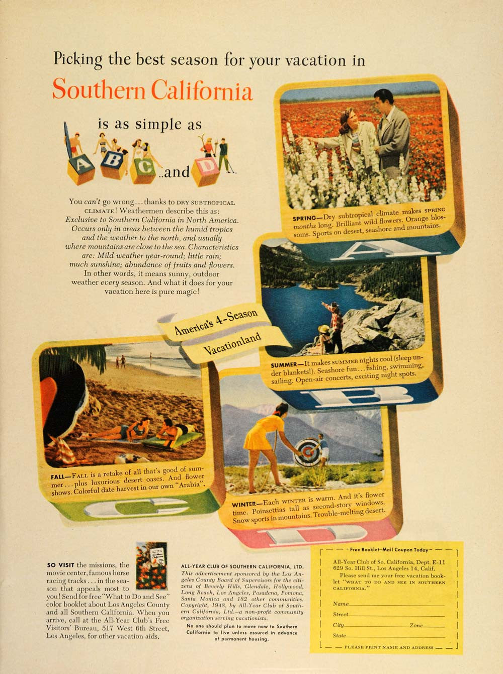 "America's 4-Season Vacationland" from the All-Year Club of So. California, 629 So. Hill St., Los Angeles.