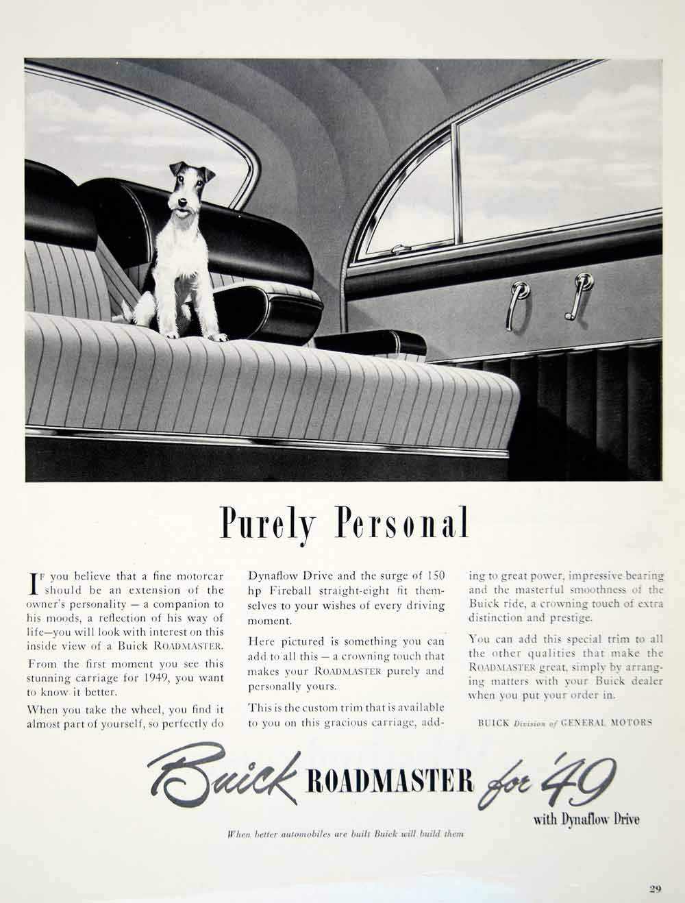 This is an original 1949 black and white print ad for the Buick Roadmaster from General Motors.