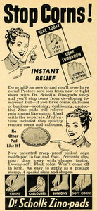 This is a small original 1949 black and white print ad for Dr. Scholl's Zino Foot Pads.
