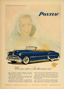 This is an original 1949 color print ad for the new 1949 Pontiacs from the Pontiac Motor Division of General Motors Corp.