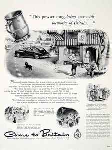 This is an original 1949 black and white print ad promoting travel to Britain.