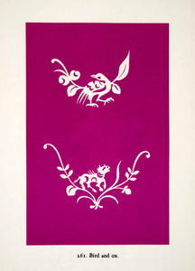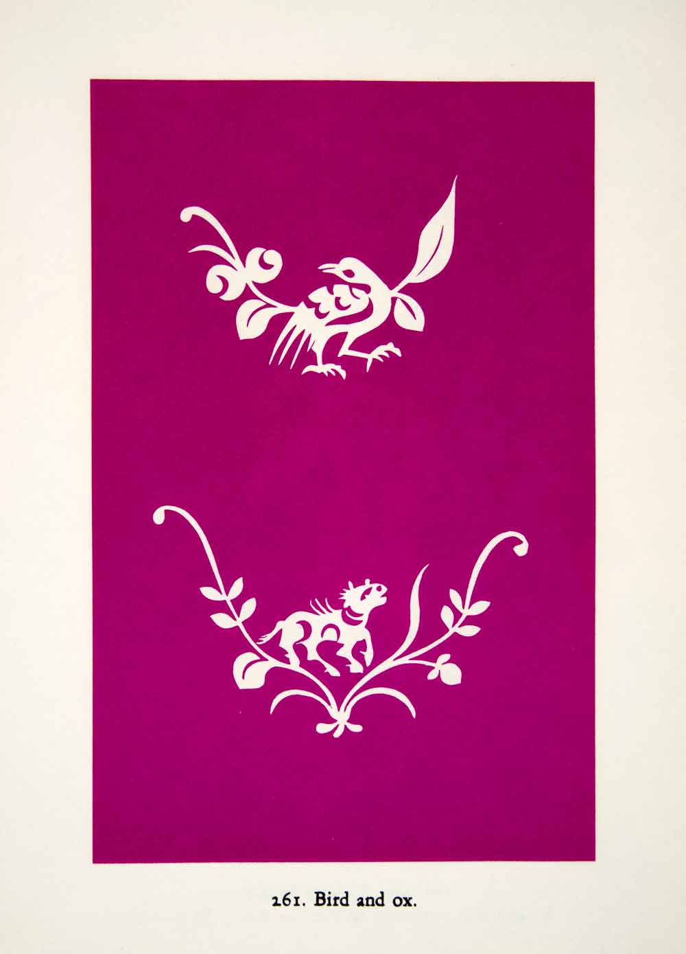 1949 Lithograph Bird Ox Floral Fowl Animal Anhwei Anhui China Chinese Motif XDG5
