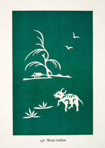 1949 Lithograph Chekiang Province Water Buffalo Motif Zhejiang Beach Bird XDG5