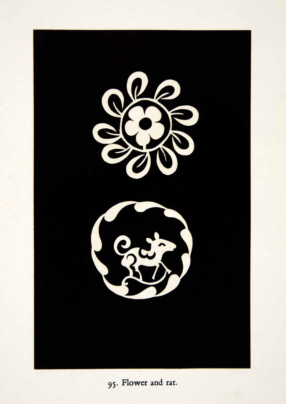 1949 Lithograph Flower Rat Floral Rodent Circular Motif Jiangsu China XDG5