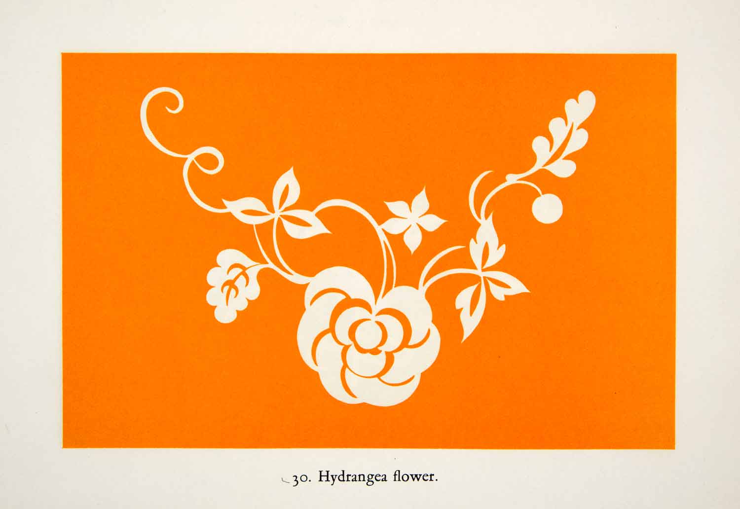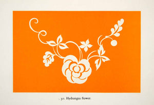 1949 Lithograph Hydrangea Flower Botanical Floral China Chinese Pattern XDG5