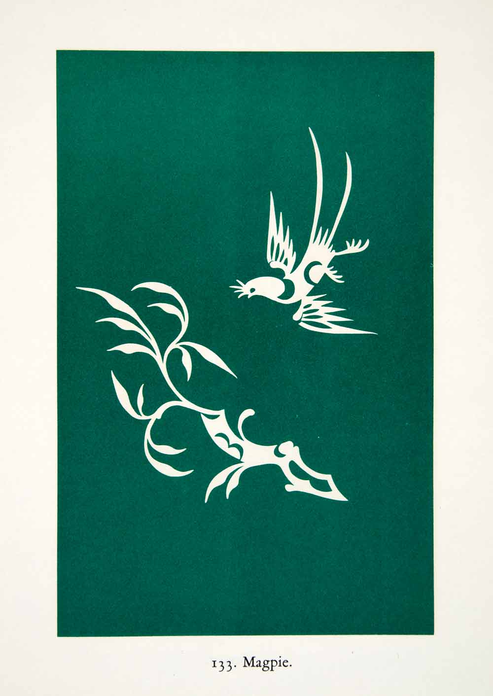1949 Lithograph Magpie Bird Tree Jiangsu Province China Chinese Pattern XDG5