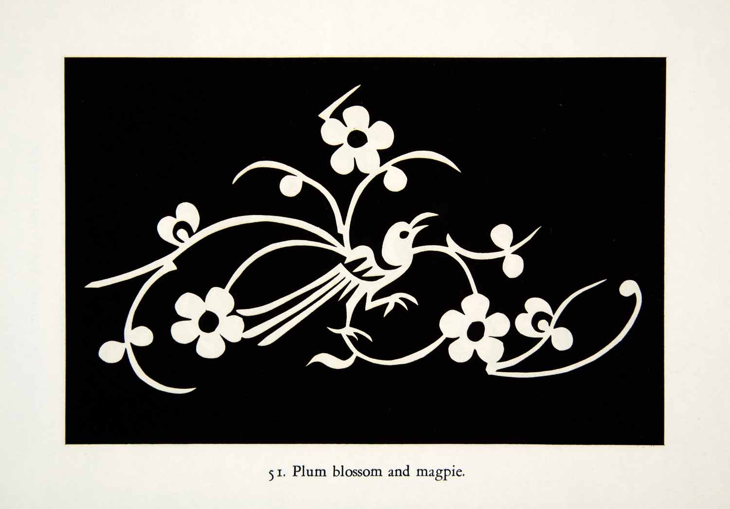 1949 Lithograph Plum Blossom Magpie Bird Jiangsu China Decorative Floral XDG5