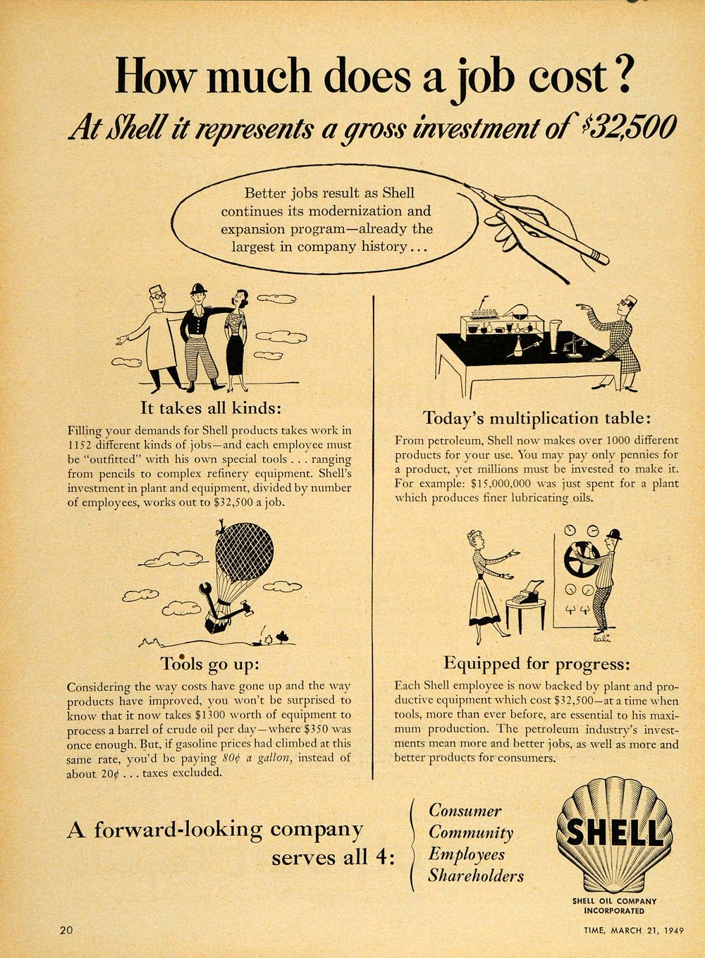 This is an original 1949 black and white print ad for the Shell Oil Company.