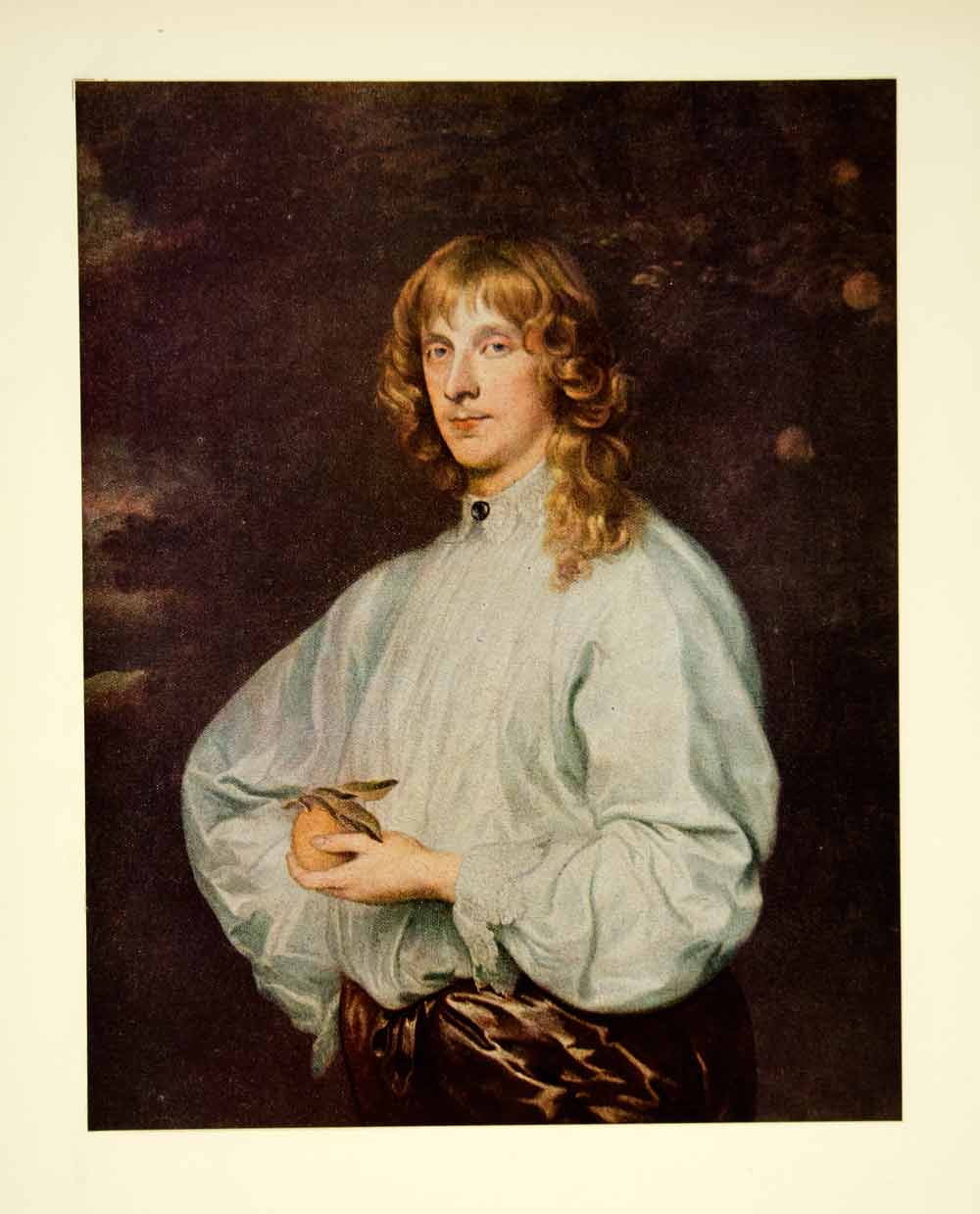 This is an original 1949 color tipped-in print of a Baroque painting by Sir Anthony van Dyck that portrayed James Stuart, 1st Duke of Richmond, 4th Duke of Lennox, dressed as Paris.