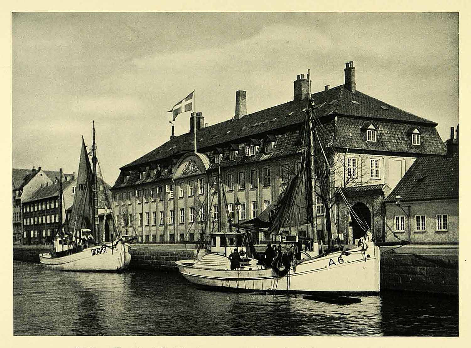 This is an original 1949 halftone print of the old Naval Hospital in Christianshavn, Copenhagen, Denmark, which later served as a private apartment complex for senior naval officers.