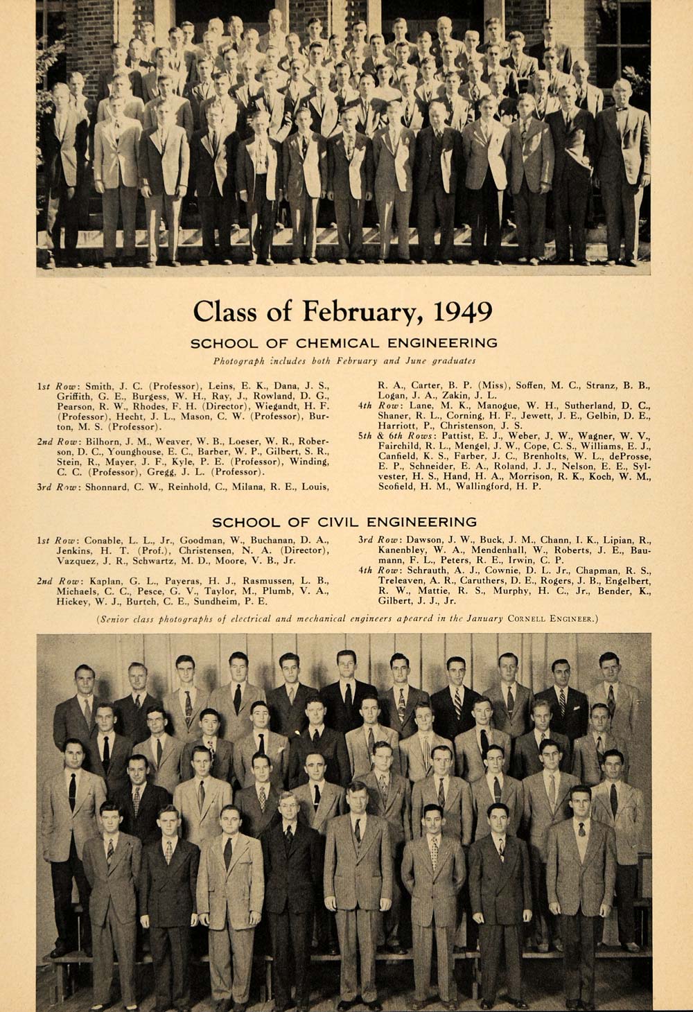 This is an original 1949 halftone print of the Cornell University graduating class of the School of Chemical Engineering and the School of Civil Engineering.
