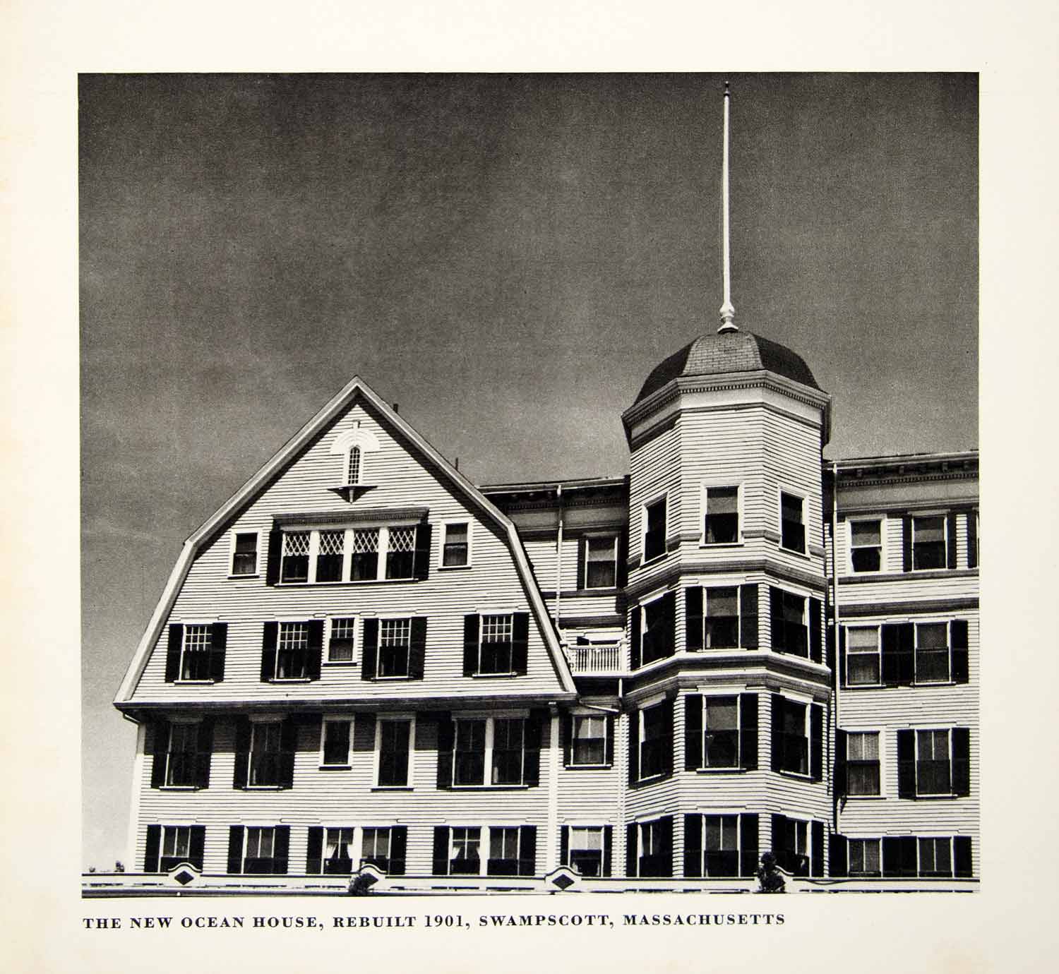 This is an original 1949 black and white rotogravure of the New Ocean House which was rebuilt in 1901 in Swampscott, Massachusetts.