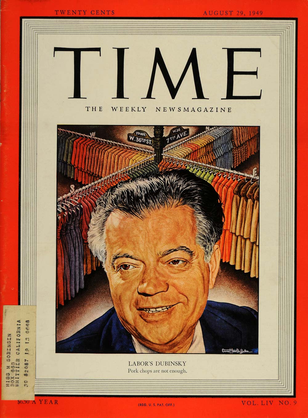 1949 TIME Cover David Dubinsky ILGWU Ernest H. Baker - ORIGINAL TM1