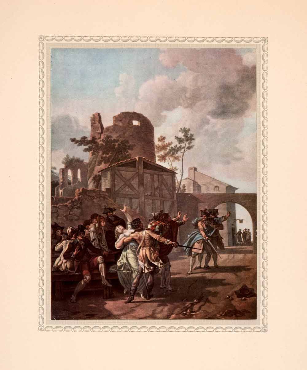 1949 Tipped-In Print Descourtis Brawl Fight Sword French Costume Maiden XAK3