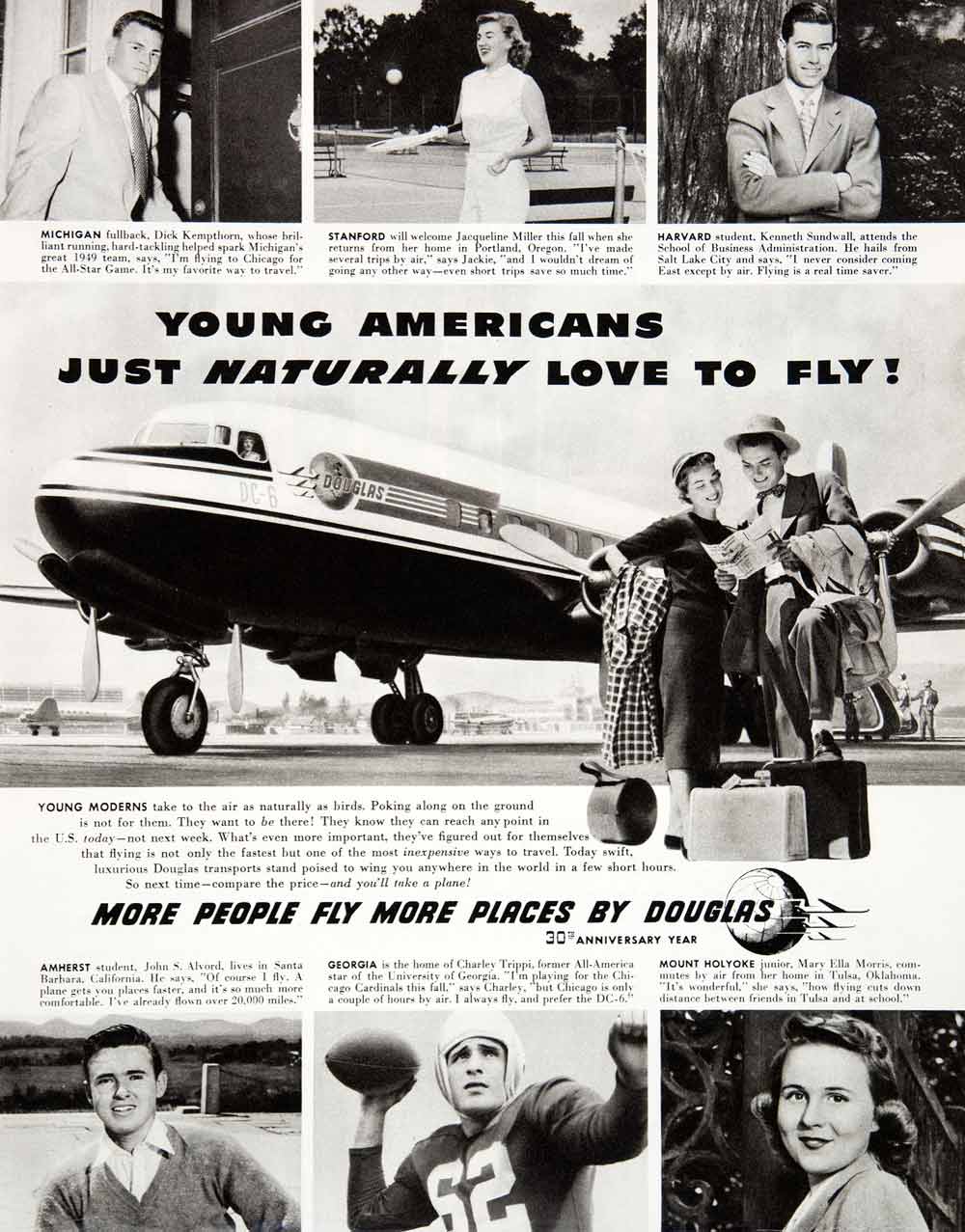 Keywords specific to this image: Vintage Advertising, Michigan, Dick Kempthorn, Stanford, Jacqueline Miller, Portland Oregon, Harvard, Kenneth Sundwall, Amherst, John S. Alvord, Georgia, Charley Trippi, All America, Mount Holyoke, Mary Ella Morris, globe