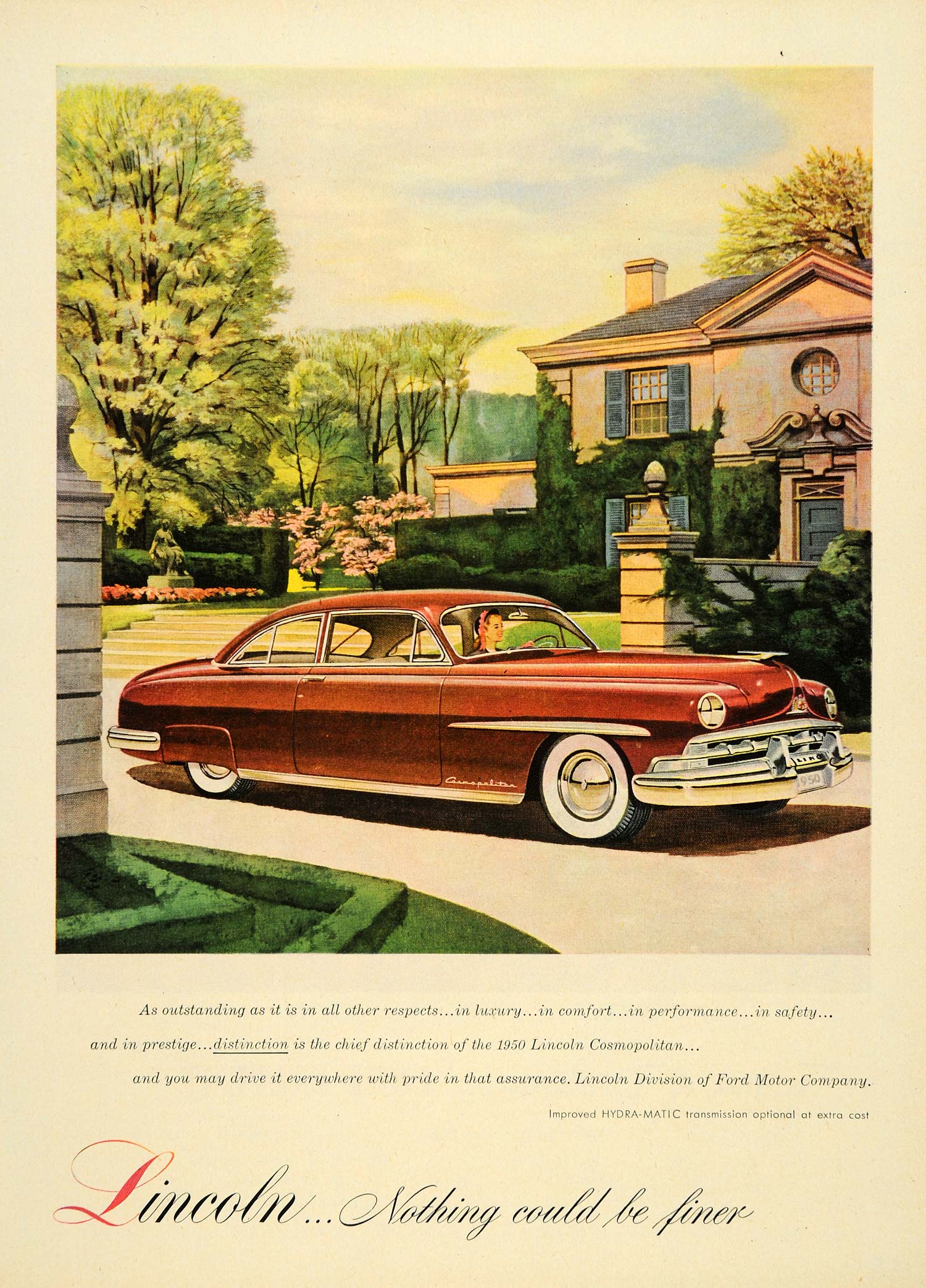 This is an original 1950 color print ad for the Lincoln Cosmopolitan.