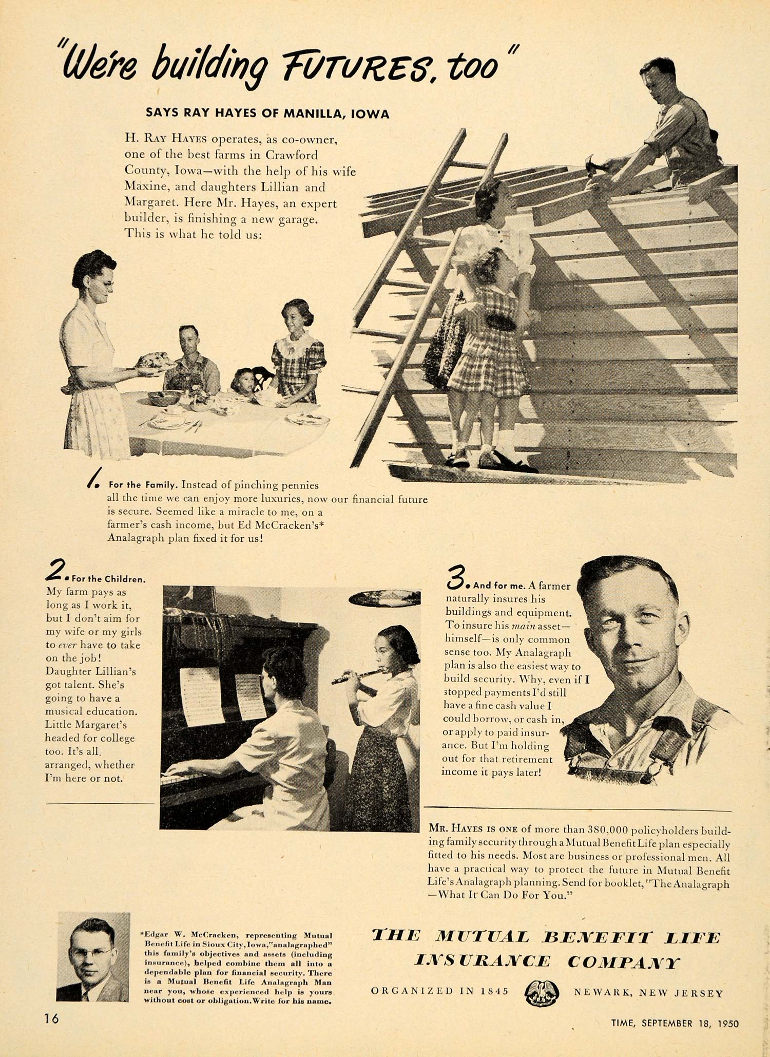 This is an original 1950 black and white print ad for The Mutual Benefit Life Insurance Company located in Newark, New Jersey.