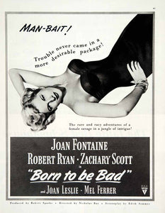 1950 Ad RKO Picture Born To Be Bad Movie Joan Fontaine Robert Ryan Zachary COLL1