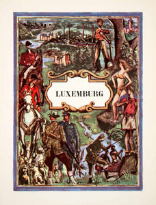 This is an original 1950 color photolithograph of an artistic cultural collage depicting Luxemburg (Luxembourg), Belgium.