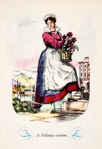 This is an original 1950 color photolithograph of a woman wearing traditional clothing from Pallanza, Italy.