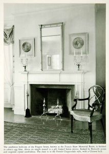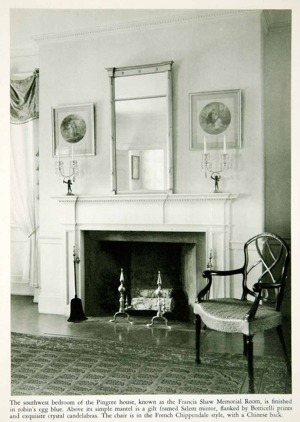 This is an original 1950 black and white rotogravure of the southwest bedroom of the Pingree house in Salem, Massachusetts.