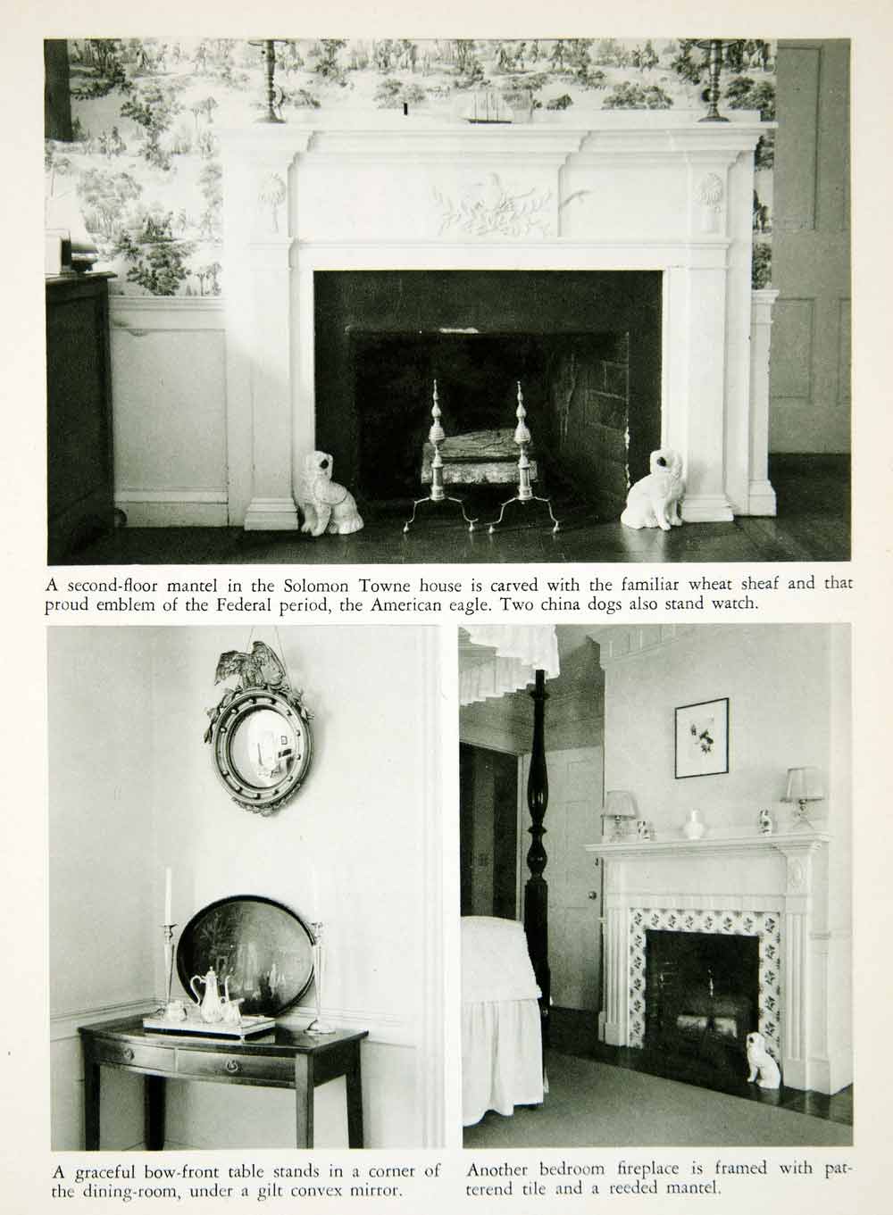 This is an original 1950 black and white rotogravure of different decorative elements of the Solomon Towne Hall in Salem, Massachusetts.