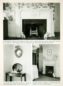 Keywords specific to this image: Furniture, Decoration, Historic, Colonial, Wheat Sheaf, American Eagle, China Dogs, Bow-Front Table, Dining Room, Gilt Convex Mirror, Bedroom, Tile