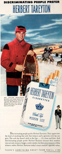 This is an original 1951 color print ad for "Herbert Tareyton," cigarettes; featuring Mr. Gwynn Robinson, socialite and winter sports fan.