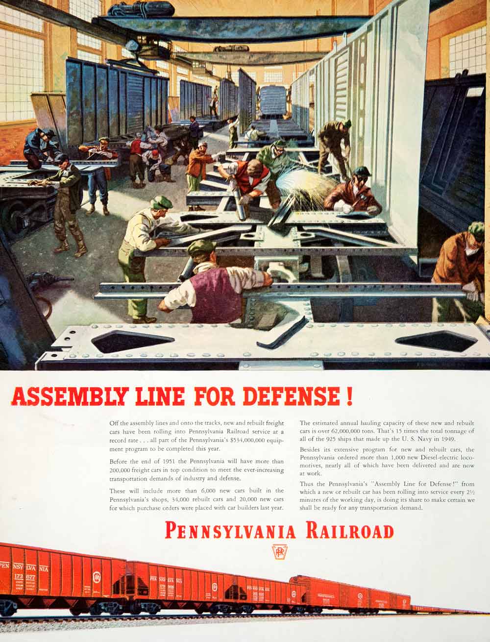 This is an original 1951 color print ad for the Pennsylvania Railroad.