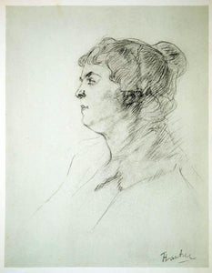 This is an original 1951 two-color lithograph of a 1897 portrait study in crayon on gray paper by Henri de Toulouse-Lautrec.