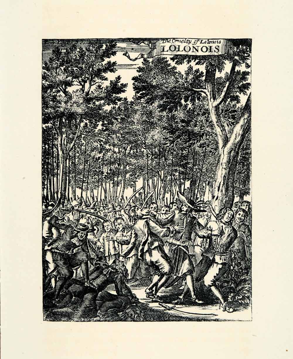 This is an original 1951 offset lithograph print of "The Cruelty of Lolonois."