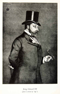 This is an original 1951 black and white photogravure of a cartoonist portrait of a smoking King Edward VII.